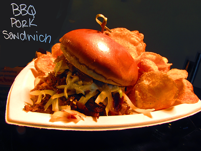 Smoke Rings- Smokey rings of onions will delight your palate. Sweet barbecue sauce copiously drizzled over perfectly golden onion rings. But that is not all . These golden beauties are sprinkled with pulled pork, smoked Gouda and bacon. But wait there is more. They are dusted with green onions and are sure to delight any fan.